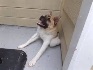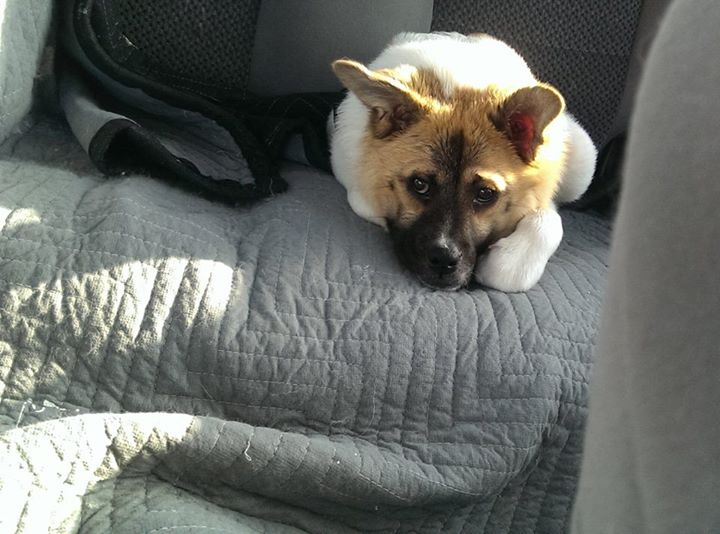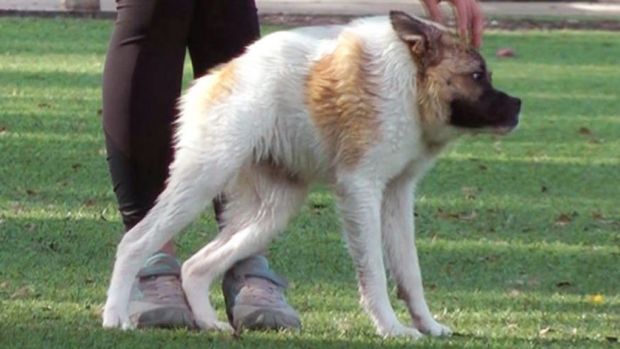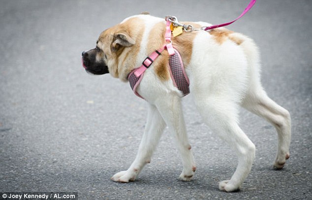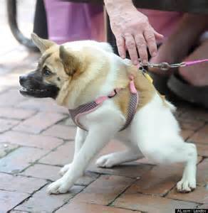 Pig is an 8 month old Akita mix, she’s missing some ribs, part of her spine, she has twisted vertebrae and her spinal cord splits in two by her neck. She might look like a photoshop but she is the real deal and when her owner Kim Dellenbeck met her it was love at first sight.